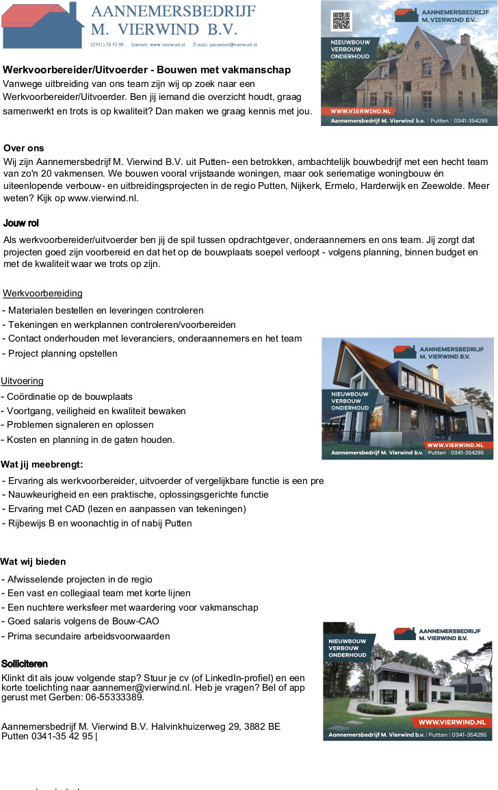 Organisatie > werken bij > Vacature Werkvoorbereider / Uitvoerder
